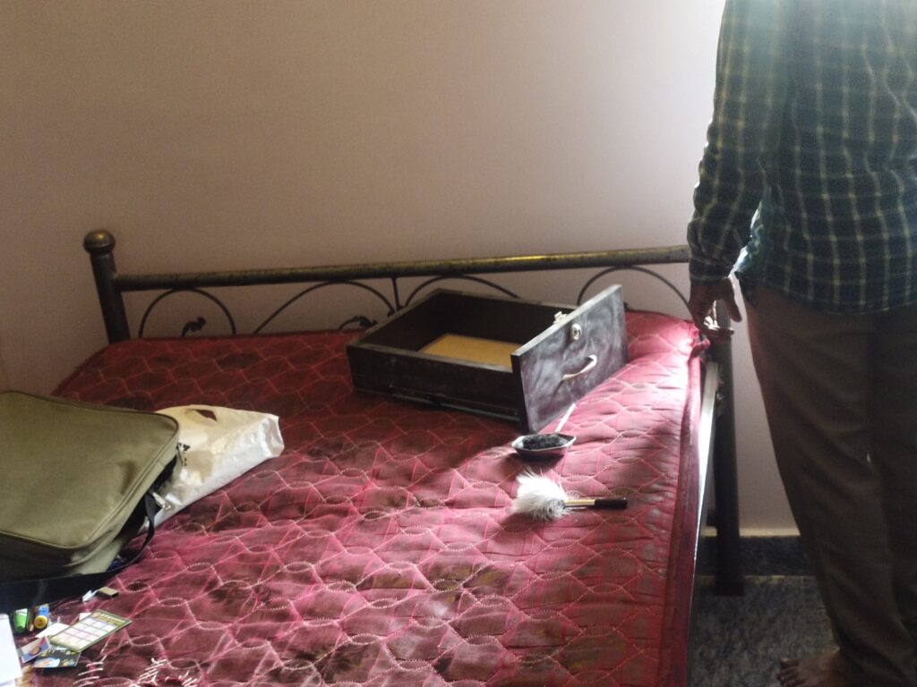 బాధితుడు టీచర్ చంద్ర తెలిపిన వివరాల మేరకు భార్య శ్వేత టీచర్ కావడంతో ఇద్దరు సెలవు పెట్టి భార్య శ్వేత తండ్రి అనరోగ్యంతో ఉండడంతో చూడడానికి ఆదివారం ఊరికి వెళ్లి బుధవారం సాయంత్రం ఇంటికి వచ్చి చూస్తే ఇంటి తాళాలు పగలగొట్టి మొత్తం చిందరమందరంగా పడి ఉండడంతో పోలీసులకు ఫిర్యాదు చేశామని తెలిపారు. ఊరికి వెళ్లేటప్పుడు బంగారు ని లాకర్లు పెట్టి వెళ్లడంతో మిగిలిపోయామని ఊపిరి పీల్చుకున్నారు. అమ్మ చీటీ ఎత్తిన డబ్బులు 1,40,000, భార్య దాచుకున్న 20000, పిల్లలు దాచుకున్న హుండీలో 12000 డబ్బులు సుమారు మూడు తులాలు ఉన్న బంగారు కమ్మలు ఎత్తుకెళ్లారని బాధితులు తెలిపారు.