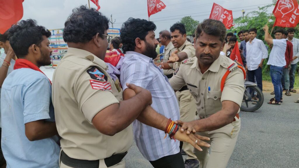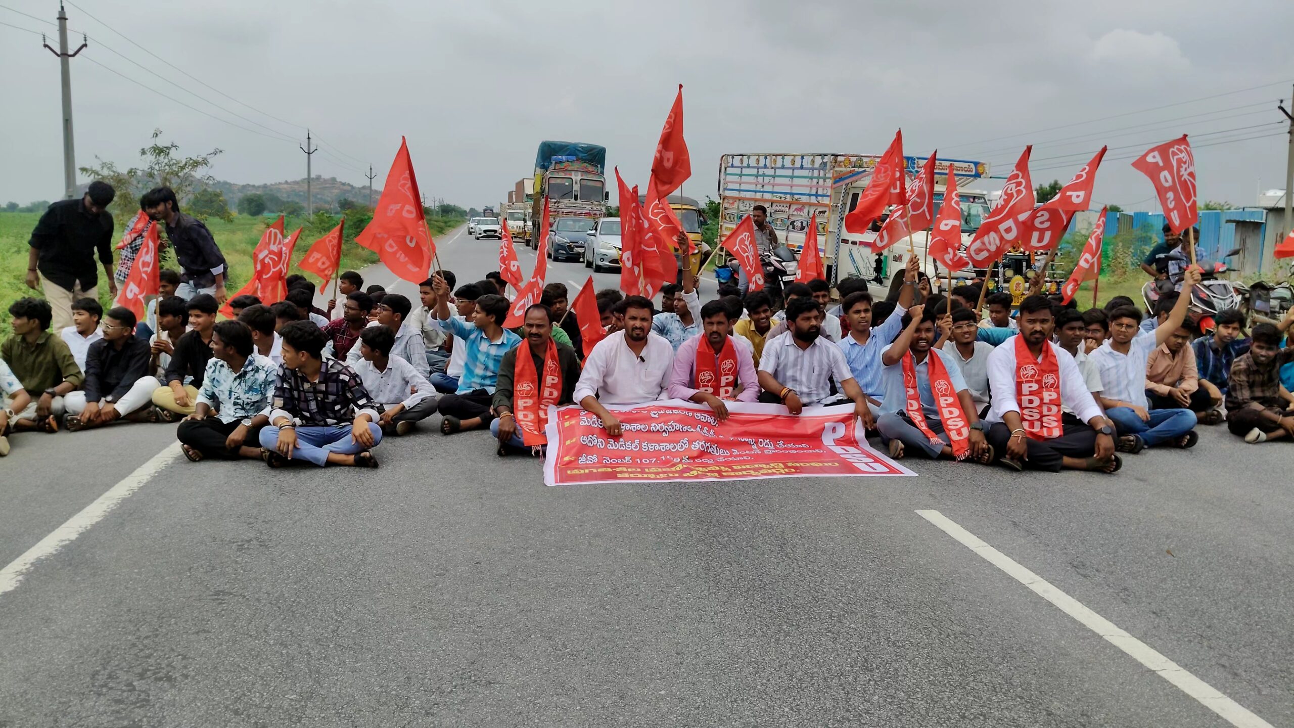 హైవే రోడ్ లో బైఠాయించి నిరసన.. అడ్డుకున్న పోలీసులు
