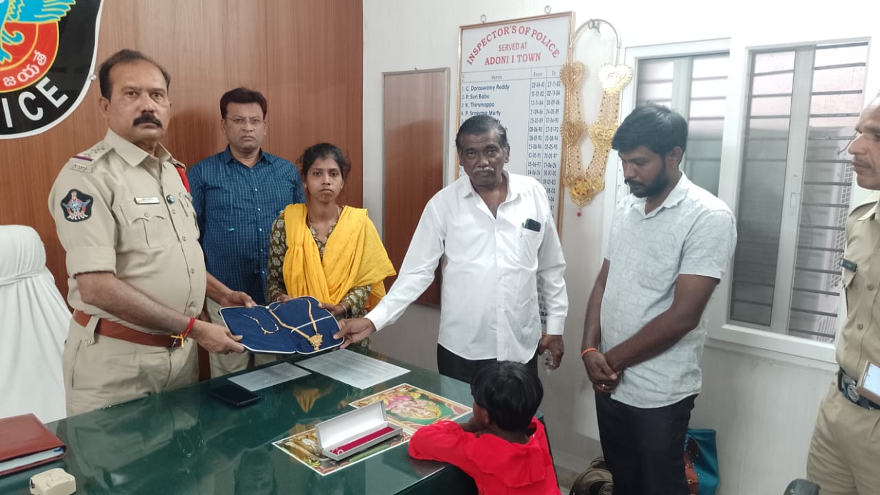 ప్రయాణంలో అజాగ్రత్తగా వదిలేసిన లక్షల విలువైన బంగారు ఆభరణాలను ఆదోని వన్ టౌన్ పోలీసులు కేవలం ఒకే ఒక్క గంటలో రికవరీ చేసి బాధితురాలికి అప్పగించారు. పోలీసుల వేగవంతమైన స్పందనపై సర్వత్రా ప్రశంసలు వ్యక్తమవుతున్నాయి.