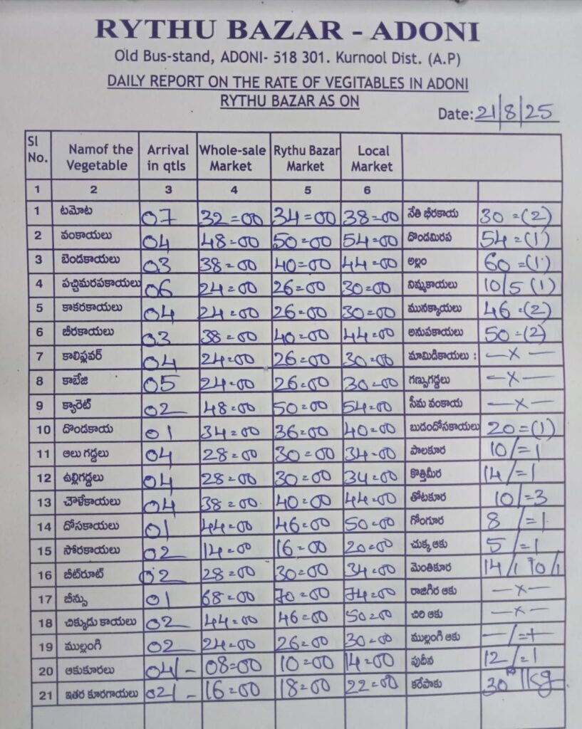 21 08 25 రైతు బజార్ ధరల పట్టిక