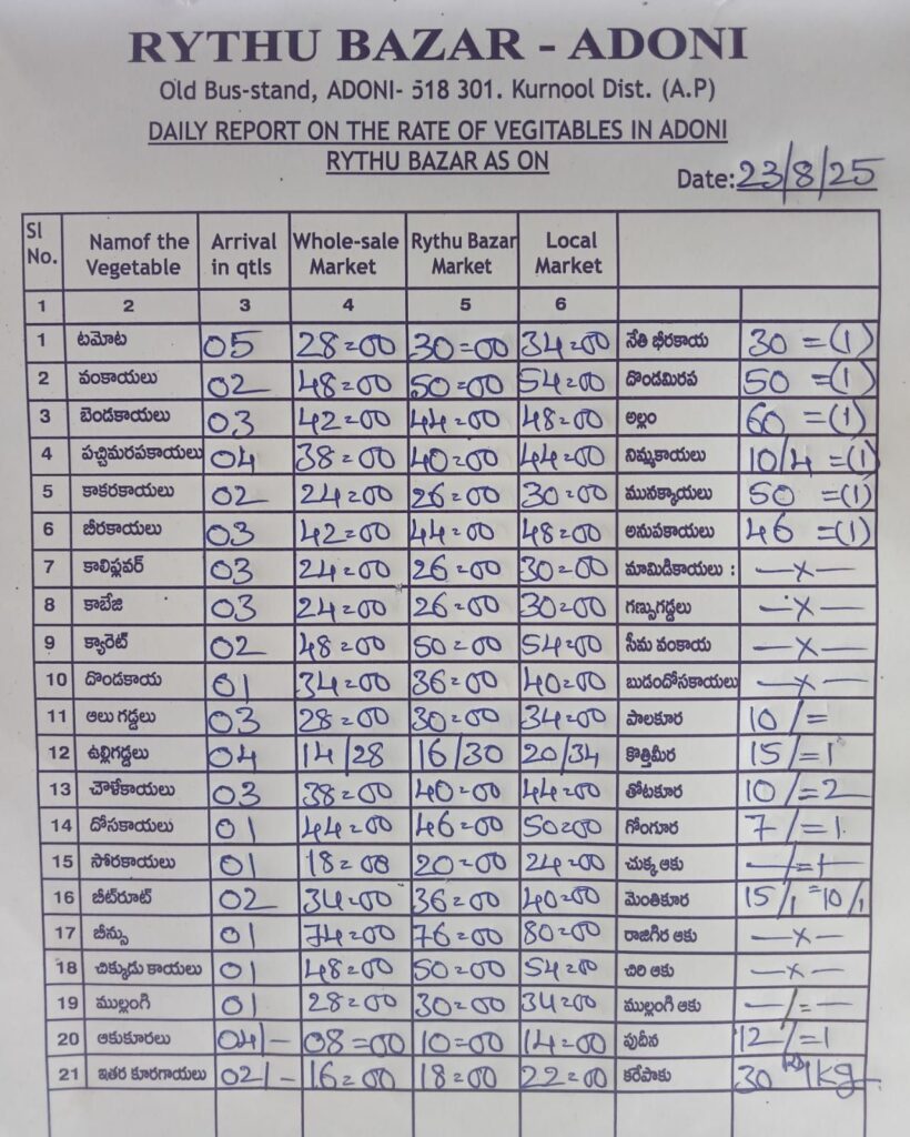 23 08 25 రైతు బజార్ ధరల పట్టిక