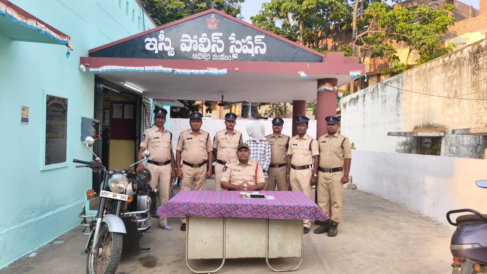 కర్నూలు జిల్లా ఆదోని మండలం కపటి గ్రామం లో గత నెల 18వ తేదీ తండ్రి ఆస్తి పంచడం లేదని కత్తి తో దాడి చేసి అడ్డొచ్చిన తల్లిని కొట్టి తండ్రి సెల్ తో ఫోన్ పే ద్వారా 2 లక్షలు తన అకౌంట్ లో వేసుకొని తండ్రి బుల్లెట్ వాహనం తో పరారైన వేణుగోపాలను ఇస్వి పోలీసులు చాగి బస్టాండ్ వద్ద అరెస్టు చేసి అతని వద్ద నుండి ఒక లక్ష 92 వేల నగదు, బుల్లెట్ మోటార్ సైకిల్, బంగారు గొలుసు, సెల్ ఫోన్ స్వాధీనం చేసుకొని రిమైండ్ కి తరలించారు.