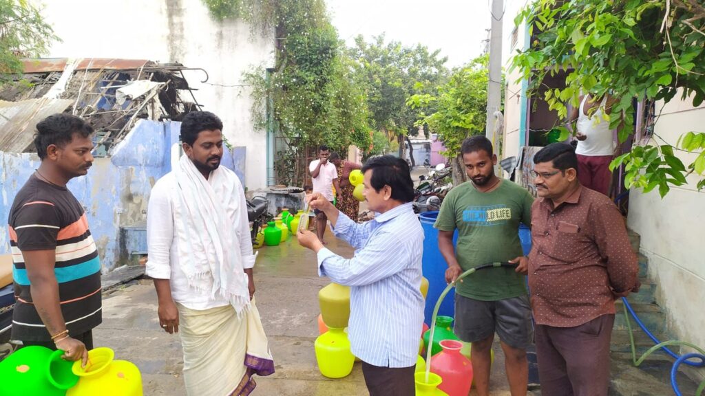 కర్నూలు జిల్లా ఆదోని నిజాముద్దీన్ కాలనీలో ప్రజలకు పరిశుభ్రమైన, సురక్షితమైన తాగునీరు అందించడమే తమ ప్రధాన లక్ష్యమని కౌన్సిలర్ ఫయాజ్ అహ్మద్ ఆధ్వర్యంలో మున్సిపాలిటీ సిబ్బంది చంద్ర, లైన్‌మాన్ సింగ్, మేస్త్రీ మహేష్ త్రాగునీటిలో క్లోరిన్ శాతాన్ని పరీక్షలు నిర్వహించారు. ఈ సందర్భంగా కౌన్సిలర్ ఫయాజ్ అహ్మద్ మాట్లాడుతూ నీటిలో క్లోరిన్ స్థాయి 1.0 పిపిఎంగా ఉన్నట్లు గుర్తించామని తెలిపారు. మున్సిపాలిటీ తరపున ప్రతిదినం నీటి పరీక్షలు నిర్వహించి ప్రజారోగ్య రక్షణకు కృషి కొనసాగుతుందని ఆయన తెలిపారు.