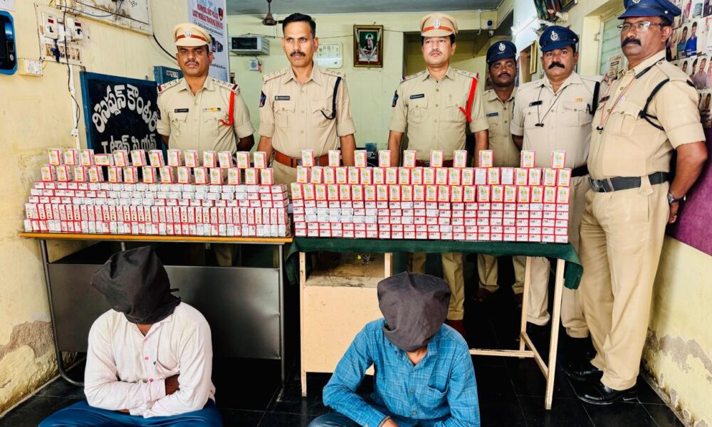 కర్నూలు జిల్లా ఆదోని మండలం ఇస్వీ గ్రామ సమీపంలో అక్రమంగా కర్ణాటక మద్యం తరలిస్తున్న వాల్మీకి నగర్ కి చెందిన బోయ నాగరాజు బోయగిరి కి చెందిన బోయే శివఅరెస్ట్ చేసి వారి వద్ద నుండి...