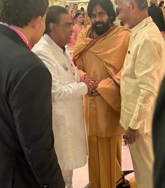 ముంబైలో ముకేష్ అంబానీ తనయుడు అనంత్ అంబానీ వివాహ వేడుకకు హాజరైన సీఎం చంద్రబాబు నాయుడు, ఆయన సతీమణి భువనేశ్వరి. శుభ్ ఆశీర్వాద్ వేడుకకు హాజరై అనంత్ అంబానీ-రాధిక దంపతులను ఆశీర్వదించిన చంద్రబాబు, భువనేశ్వరి. చంద్రబాబు...