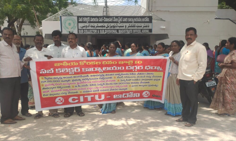 మా శ్రమను గుర్తించి మాకు న్యాయం చేయండి అంటూ ప్రభుత్వాన్ని విన్నవించుకుంటున్నరు అంగన్వాడి ఆశా వర్కర్లు.. కర్నూలు జిల్లా ఆదోని సబ్ కలెక్టర్ కార్యాలయం ముందు సిఐటియు ఆధ్వర్యంలో అంగన్వాడీ వర్కర్స్ నిరసన కార్యక్రమం చేపట్టారు....