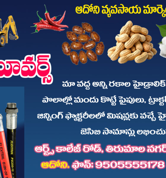 తేదీ 11-09-25 కర్నూలు జిల్లా ఆదోని వ్యవసాయ మార్కెట్లో పత్తి,వేరుశనగ, ఆముదాలు ఎండు మిర్చి ధరలు ఈ విధంగా ఉన్నాయి. పత్తి అత్యధికంగా ₹. 7969/- రూపాయలు కనిష్ట ధర ₹. 4011/- రూపాయలు పలికింది....